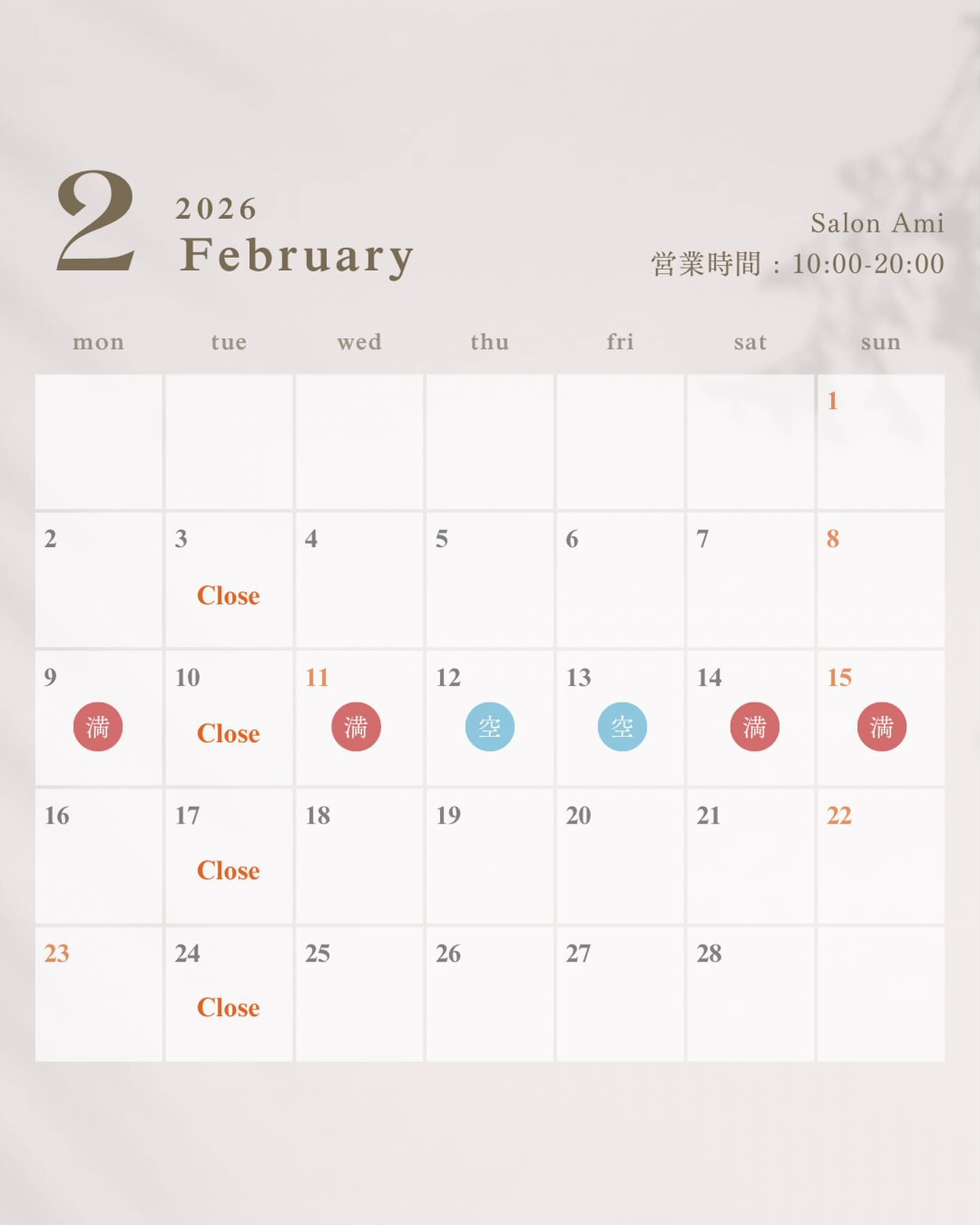 今週の空き状況🗓️