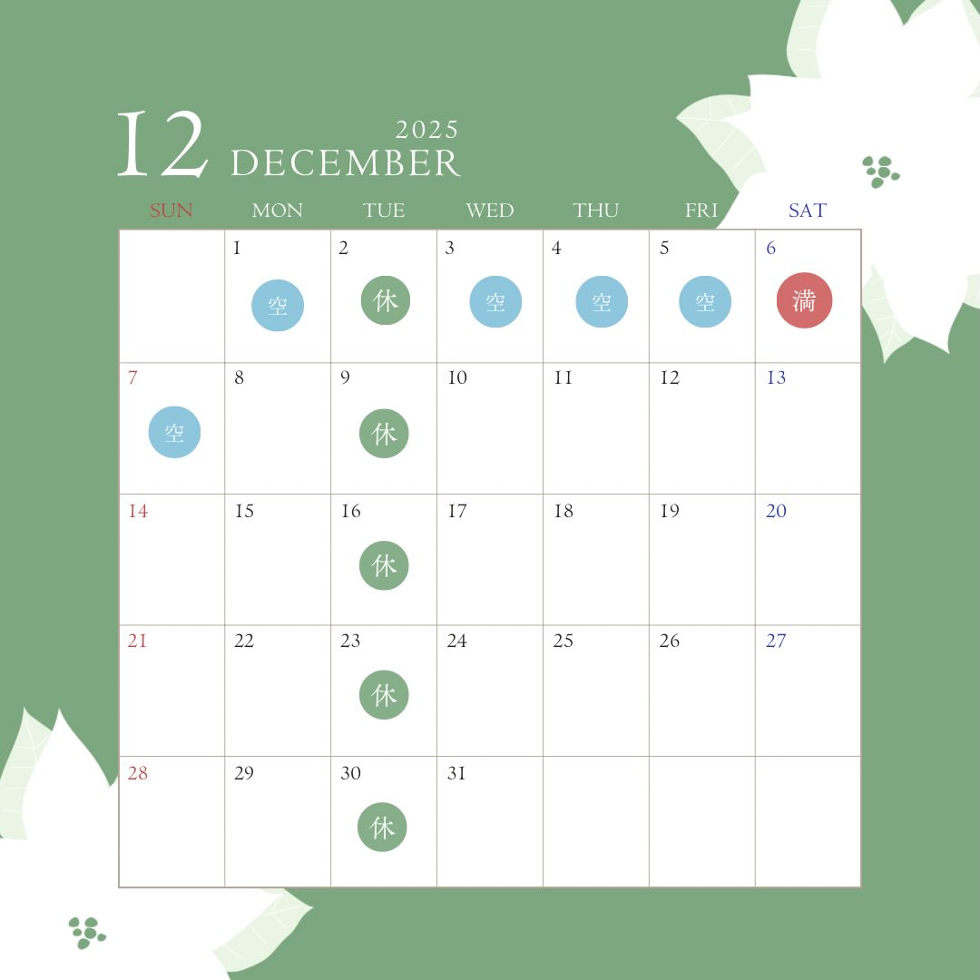 明日の予約空き状況🈳12/4