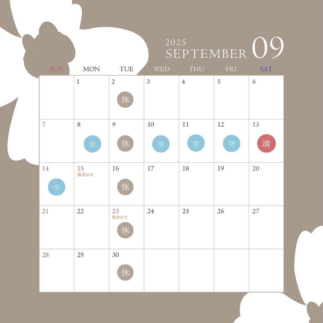明日の予約空き状況🈳9/11