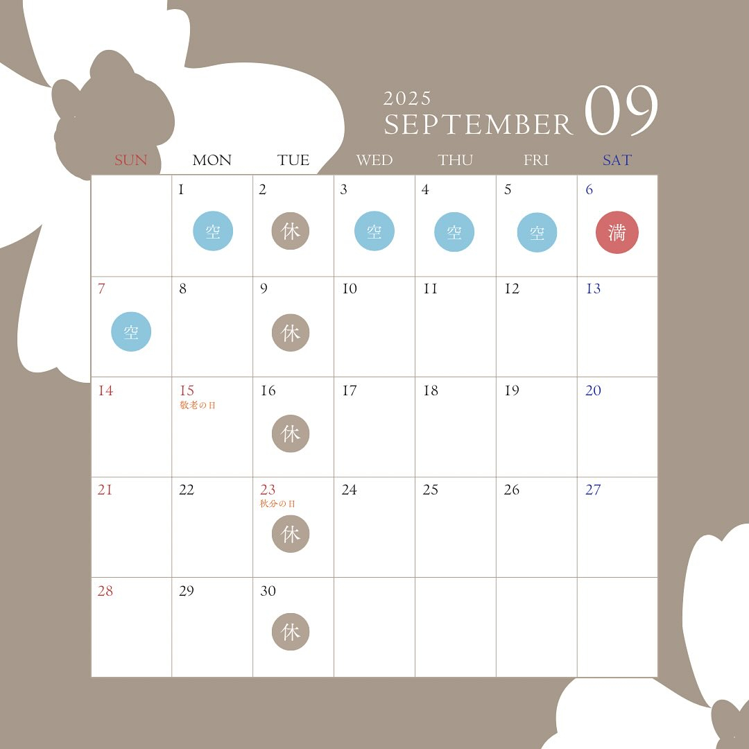 明日の予約空き状況🈳9/4