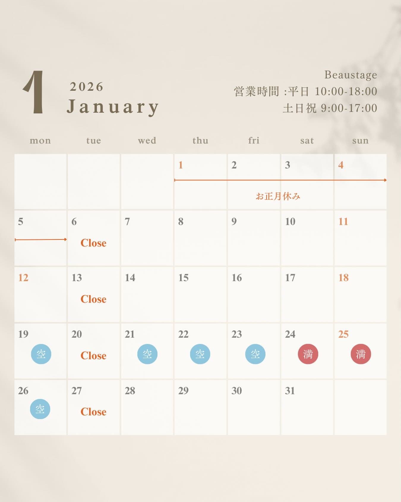今週の空き状況🗓️