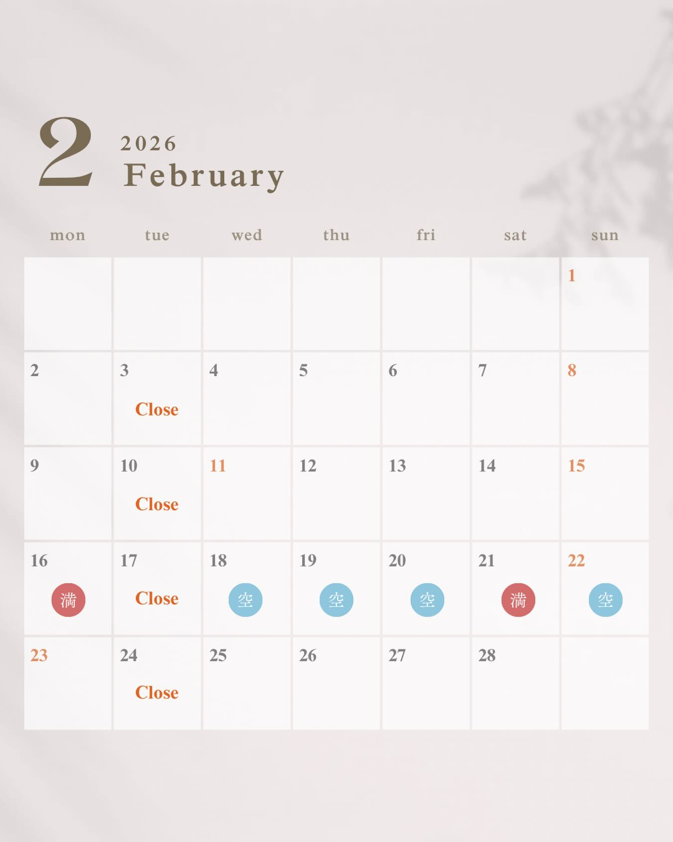 今週の空き状況🗓️