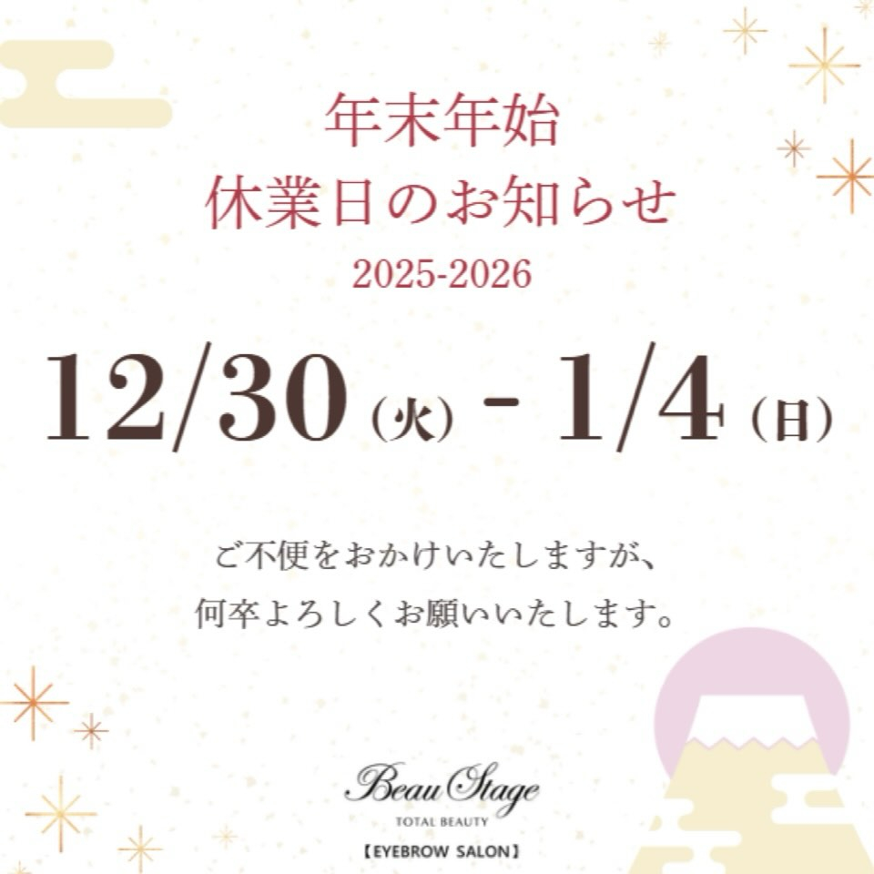 年末年始の休業日のお知らせです。
